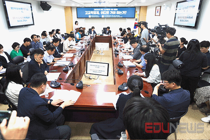 토론회에는 임태희 경기도교육감과 정근식 서울특별시교육감, 국회 교육위원회 김영호 위원장을 비롯해 지역별 중·고등학생 등 모두 100여 명이 참석했다.