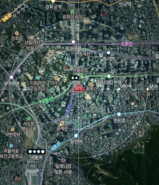 더플라자호텔 저층부 일부를 철거해 건물을 관통하는 필로티 형태의 공공보행통로를 신설한다. 이를 통해 시가 조성 중인 `세종대로 대표 보행거리`와 연계돼 광화문→서울광장→북창동→남대문시장을 잇는 도심보행 네트워크를 완성하게 된다. 40년 넘게 건물로 단절됐던 서울광장과 북창동 사잇길이 열려, 시청역→호텔→명동을 연결하는 소공 지하보도 환경 개선이 이뤄진다.