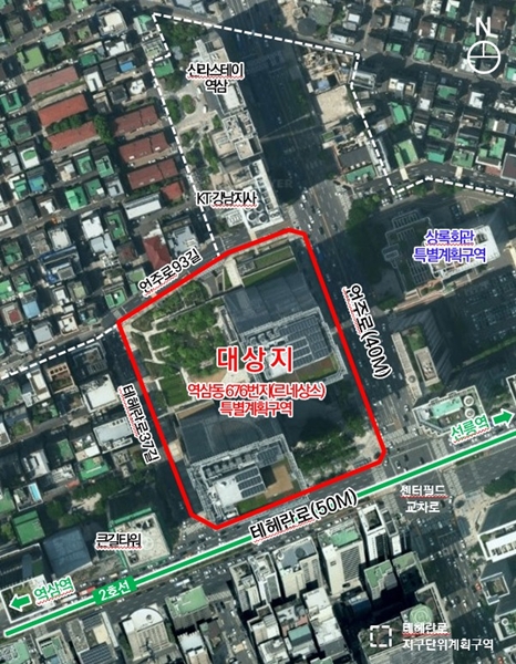 대상지는 지하철 2호선 역삼역과 선릉역 사이, 테헤란로 중심부의 센터필드 교차로 인근에 위치해 교통 접근성이 우수한 곳이다. 2021년 준공된 센터필드 웨스트동(지하 1~2층, 지상 3~4층ㆍ24~36층), 현재 조선팰리스 호텔이 임대해 운영 중이다.