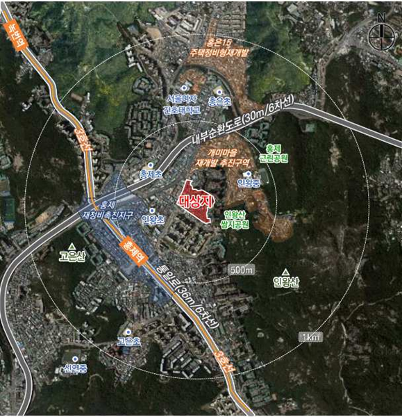 서대문구 세무서10길 27-1(홍제동) 일원 2만8044㎡를 대상으로 한 홍제4구역 재개발사업은 지상 최고 28층 아파트 877가구(임대 185가구) 및 부대복리시설을 짓는 내용을 골자로 한다.