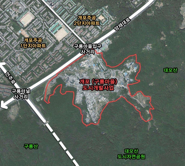 개포(구룡마을) 도시개발사업은 강남구 양재대로 478(개포동) 일원 26만6502㎡를 대상으로 앞으로 지상 최고 30층 공동주택 3739가구 및 부대복리시설 등을 공급하는 내용을 골자로 한다.