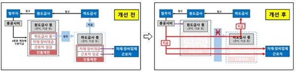 또한 개정안은 발주자가 원수급인에게 지급한 공사대금 중 근로자 임금, 자재장비비는 하수급인 건설사를 거치치 않고 개별 근로자ㆍ자재장비업자에게 직접 지급하도록 했다.