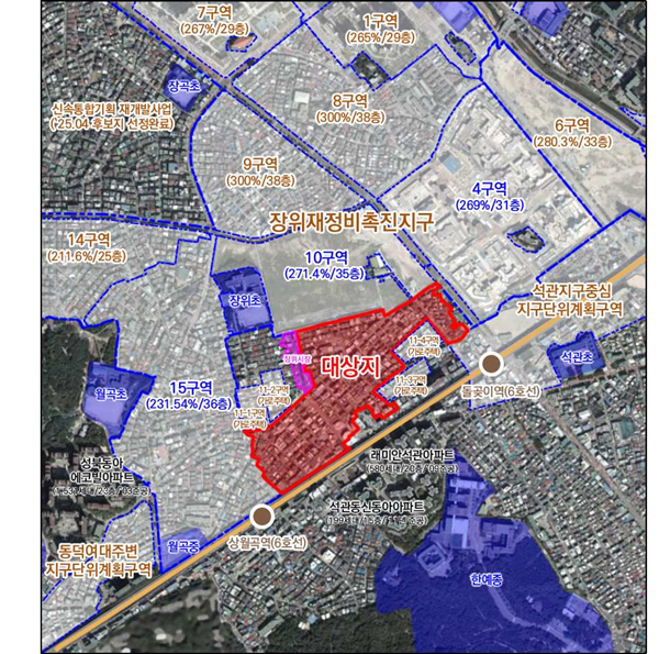 [아유경제=조명의 기자] 서울 성북구 지하철 6호선 돌곶이ㆍ상월곡역세권인 장위동 66-300 일대에 지상 최고 45층 공동주택 2617가구 규모 단지가 조성된다.
