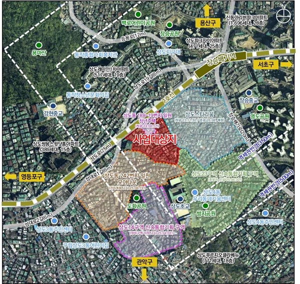 대상지는 7호선 장승배기역 인근으로 구역 주변에서 역세권 장기전세주택(상도스타리움), 모아타운(상도동 242 일대), 신속통합기획(상도14ㆍ15ㆍ23구역) 등 개발사업이 활발하게 진행 중이다.