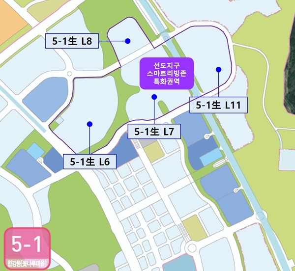 합강동은 선도지구 스마트리빙존 특화권역으로 스마트 라이프와 직주근접 커뮤니티 실현을 위한 첨단 스마트도시 서비스가 도입된다. 다솜동 용호천 인근의 보행 친화 공동주택 특화권역은 소규모 블록 계획을 통해 보행환경이 개선되고, 중앙부의 공공시설 복합 단지 특화권역 주거 단지는 문화공원을 중심으로 공공청사, 학교 등과 연계해 통합적으로 조성된다.