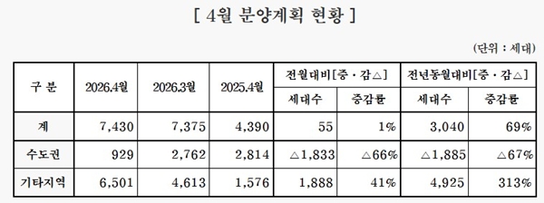 이는 전월(7375가구) 대비 55가구(1%) 증가한 수치다. 전년 동월(4390가구)와 비교하면 3040가구(69%) 늘었다.