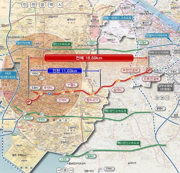 제4경인고속화도로는 제1경인고속도로와 제2경인고속도로의 교통 혼잡을 완화하고 신규 동서축 간선도로망을 구축하는 핵심 사업이다. 인천 미추홀구 용현동(인천대로)에서 장수IC와 부천을 거쳐 서울 구로구 오류동(오류IC)까지 연결되는 총연장 18.69㎞, 왕복 4~6차로의 소형차 전용도로로 건설될 예정이다.