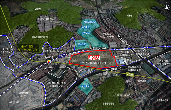 대상지는 지하철 1ㆍ7호선 환승역인 온수역 인근에 있다. 이 사업은 구로구 오류동 111-1 일원 6만6376.3㎡를 대상으로 기존 준주거지역ㆍ근린상업지역을 제2종일반주거지역(7층 이하)으로 종상향해 연면적 약 42만 ㎡의 지하 5층~지상 43층 공동주택 2071가구 및 판매시설, 근린생활시설 등을 짓는 내용을 골자로 한다.