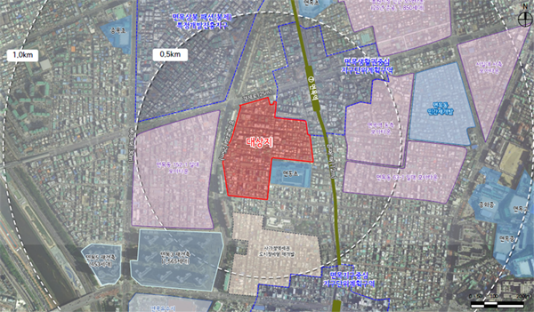 대상지는 7호선 면목역세권에 위치해 강남권으로 30분 내외에 진입이 가능하고, 인근에 동부간선도로가 인접해 있어 서울 도심과 경기북ㆍ남부로의 이동이 용이한 곳이다. 대상지 주변으로 는 모아타운 등 노후 저층 주거지 개선을 위한 도시정비사업이 추진 중이다.
