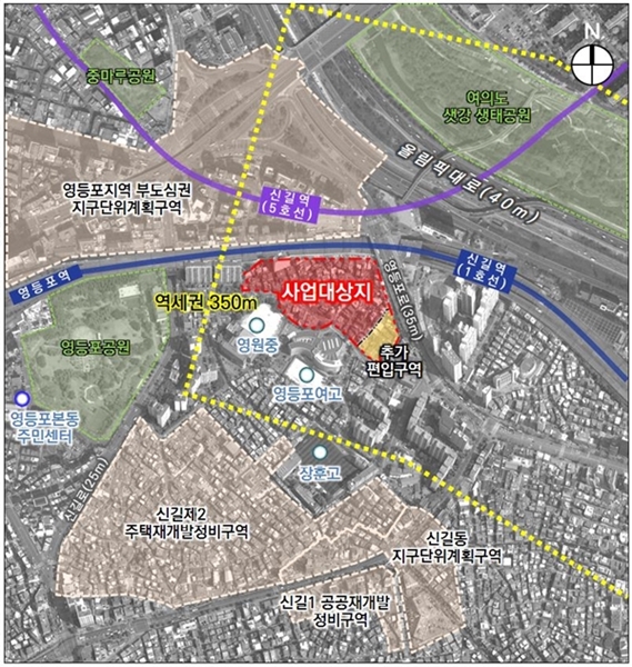 이 사업은 영등포구 영등포로62라길 2(신길동) 일원 2만9080.3㎡ 중 공동주택 획지 2만4384.2㎡를 대상으로 건폐율 24.89%, 용적률 468.98%를 적용한 지하 4층~지상 45층 아파트 8개동 999가구(장기전세주택 304가구ㆍ재개발 의무 임대 67가구) 및 근린생활시설 등을 건립하는 내용을 골자로 한다.