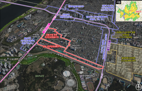 대상지는 강동구 올림픽로 528(성내동) 일원 38만8485㎡ 규모다. 잠실 광역 중심과 천호ㆍ길동 지역 중심을 연결하는 축에 있으며, 행정ㆍ주거ㆍ여가 기능이 밀집한 강동구 핵심 입지로 꼽힌다. 최근 대규모 주거 단지 입주 등으로 배후 인구가 증가하면서 생활ㆍ문화 수요가 확대되고 있으나, 기존 지구단위계획은 개발 유도에 한계가 있고 강동구청 주변, 성내 등 두 개 지구단위계획으로 이원화돼 비효율이 발생해 왔다.