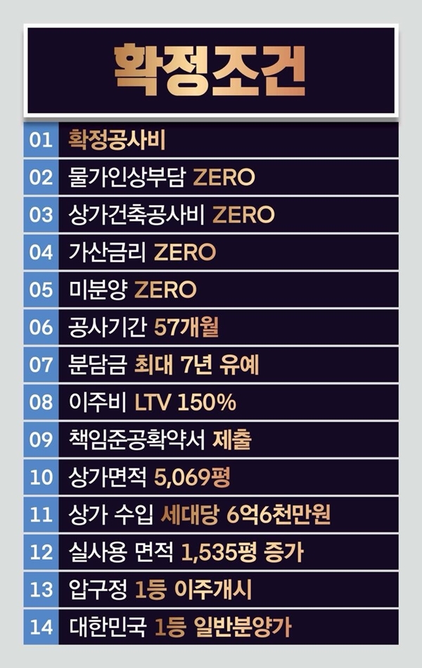 해당 제안에는 ▲3.3㎡당 1139만 원 확정 공사비 ▲이주비 LTV 150% ▲필수사업비 금리 가산금리 제로 ▲공사 기간 57개월 ▲분담금 납부 유예(최대 7년) ▲책임준공 확약 ▲상가 건축공사비 제로ㆍ상가 수입 세대당 6억6000만 원 등이 담겼다.