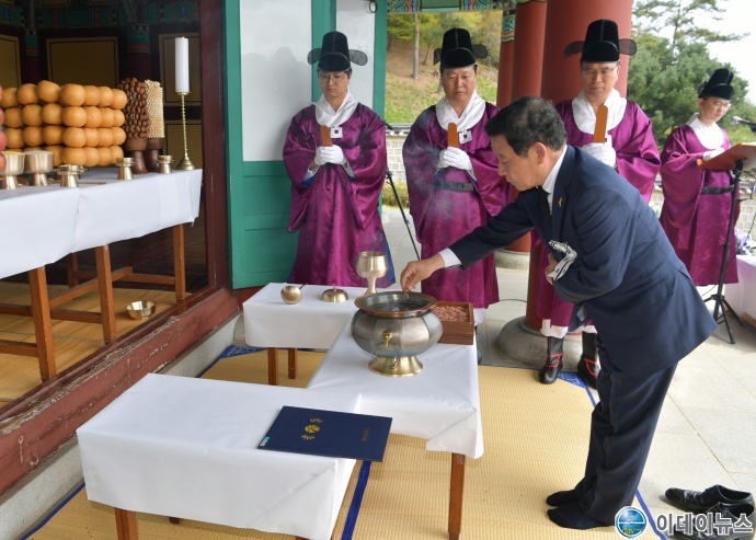 윤장현 광주광역시장이 지난 14일 오전 남구 포충사 영당에서 열린 ‘충렬공 제봉 고경명 선생 제425주기’ 제향행사에 참석해 추모사를 하고 있다.