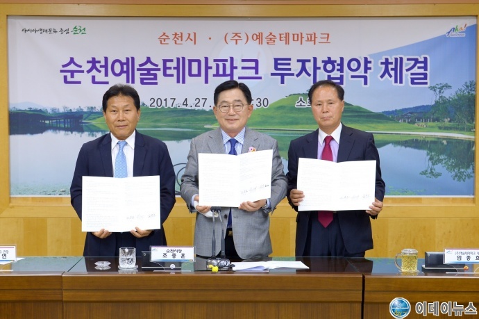 순천시는 상사면 용암리 일원에 미술품, 분재, 조각 등을 전시할 공간을 조성 예정인 ㈜예술테마파크와 투자협약을 27일 체결했다.