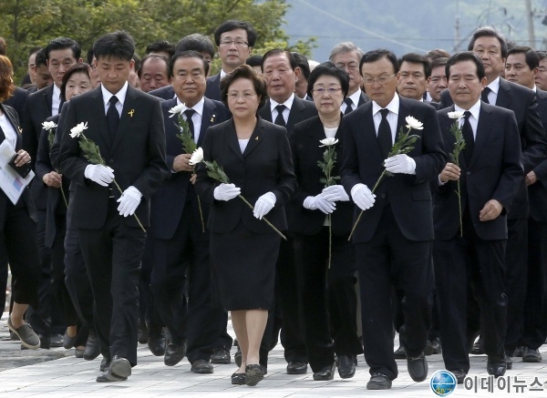 오늘 추도식은 현직 대통령이 되어 첫 참배한 문재인 대통령부부와 유족을 비롯해 노무현재단 임원 및 참여정부 인사, 정당대표, 지자체장 등이 참석한 가운데 진행되었다.