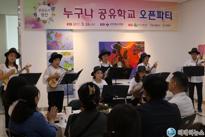 광산구자원봉사센터는 24일 “누구나 공유학교” 3기 오픈파티 행사를 수완재활요양병원에서 열었다. 누구나 공유학교는 오픈파티를 시작으로 두 달간 스마트폰활용법, 정리수납, EM세제 만들기 등 20개의 프로그램을 운영한다. 누구나 공유학교는 내가 사는 마을 이웃주민이 공유 강사로 나서 재능을 나누고 참여자들끼리 소통하며 지역사회에 재능을 나누는 취지로 마련되었다.