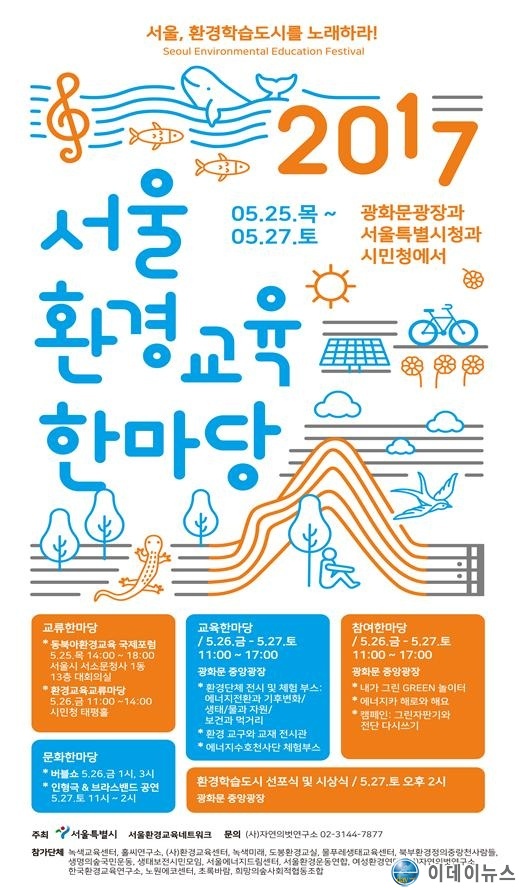 서울시와 서울환경교육네트워크는 지난 5월 25일(목)부터 27일(토)까지 광화문 중앙광장, 서울시청 서소문청사 및 시민청 등에서 ‘2017 서울환경교육한마당’ 행사를 개최한다.
