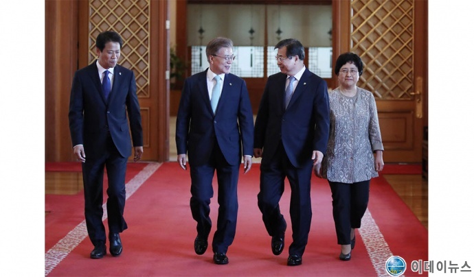 【문재인대통령과 임종석 비서실장, 서훈 국정원장 사진】