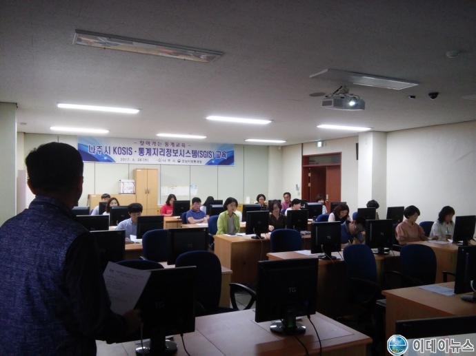 나주시(시장 강인규)가 28일 시청 전산교육장에서 과학 행정 구현을 위한 '통계지리정보서비스(SGIS)교육'을 관계 공무원을 대상으로 호남지방통계청의 ‘찾아가는 통계교육’ 서비스 지원과 양 기관의 협업 및 소통의 장 차원에서 마련됐으며, 지역의 각종 통계 데이터를 기반으로 한 공직자의 합리적·과학적 정책 개발 능력 함양에 초점을 뒀다.