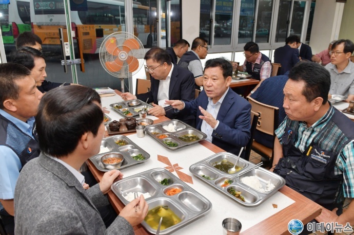윤 시장은 운전원들의 노고에 대한 감사를 표시하고 최근 새롭게 단장된 운전원 식당에 대한 의견도 수렴하면서 “‘시민의 발’과 같은 시내버스 운전원들의 복지 향상을 위해 취임 초부터 식당, 휴게실 등의 환경 개선을 추진해왔다”며 “시내버스 노사 간 임금단체협상이 타결되는 등 노사가 힘을 모으면서 광주형 일자리 추진도 탄력을 받을 것으로 예상한다”고 말했다.
