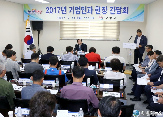 영광군(군수 김준성)은 지난 7월 11일 ㈜대한그린에너지 회의실에서 군서농공단지 및 송림그린테크단지 기업 대표와 1사1담당제로 기업을 담당하는 간부공무원 60여명이 참석한 가운데 현장 간담회를 개최하였다.