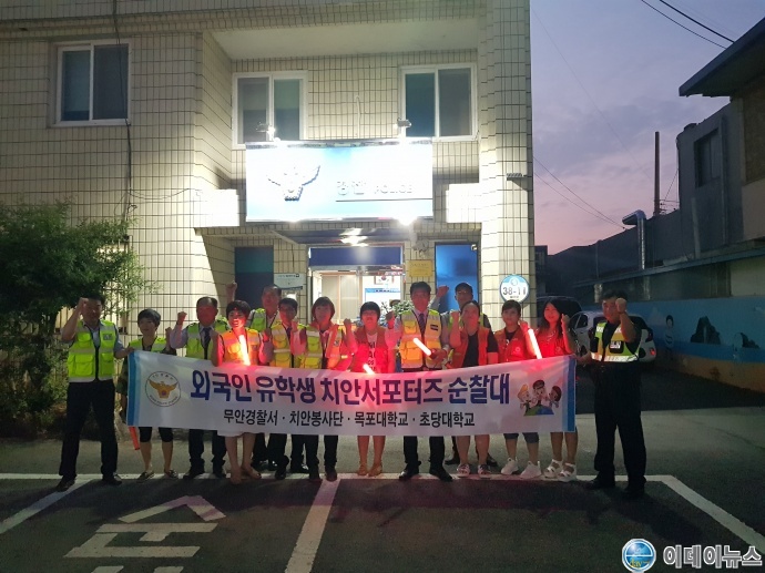 무안경찰서는 외국인 치안봉사단으로 구성된 다문화순찰대와 자율방범대, 전남혁신교육시민모임 등 유관기관과 합동으로 7. 13. 오후 8시부터 2시간 동안 무안읍 일대 및 초당대 원룸촌 등 범죄 취약지에서 성범죄·빈집털이 예방 순찰 활동을 펼쳤다.
