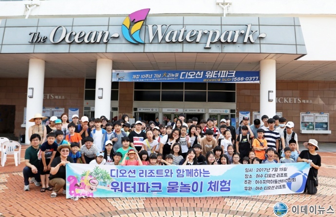 여수 디오션리조트가 지난 15일 여수보육원생, 지역아동센터와 화양면 관내 어린이 등 500여명을 초청, 워터파크 무료체험 행사를 가졌다.