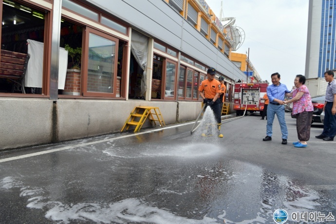 시 소방안전본부는 지난 주말동안 소방차 47대, 인원 127명을 동원해 동구 프린지페스티벌 행사장, 서구 양동시장 등 43곳에 살수작업을 추진해 시민들로부터 호응을 얻었다.