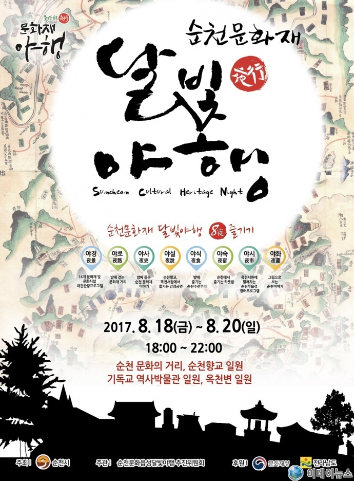 순천시는 야간형 문화 향유․체험 프로그램인 ‘순천 문화재 달빛야행(夜行)’을 오는 18일부터 20일까지 3일간 저녁 6시부터 10시까지 원도심 일대에서 개최한다.