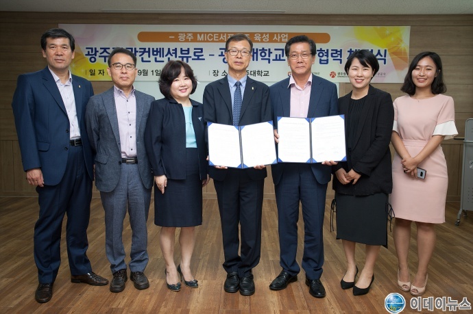 광주관광컨벤션뷰로와 광주대학교는 광주의 국제회의(MICE) 및 관광 산업 지역인재 양성을 위한 ‘MICE·관광산업 지역 인재양성’ 업무협약을 가졌다고 지난 1일 밝혔다.