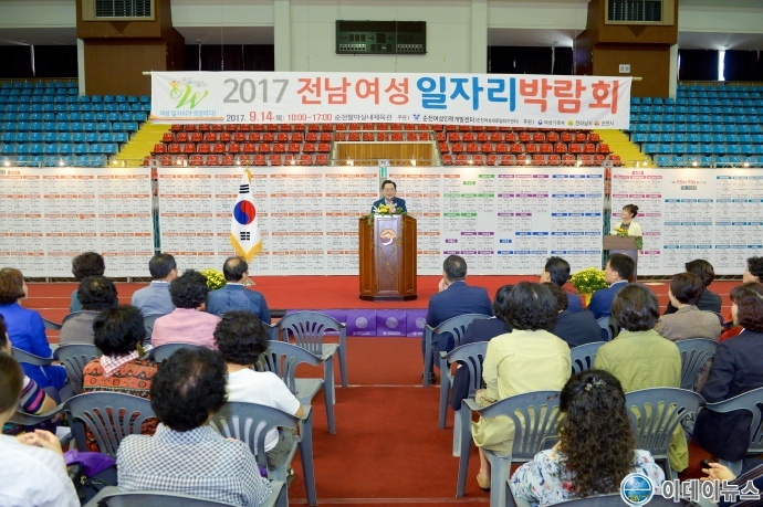 순천시는 새로운 일에 도전하는 여성들에게 직업에 대한 다양한 정보를 제공하고 자신에 맞는 일자리를 찾을 수 있도록 지원하는 ‘2017 전남여성 일자리박람회’를 14일 순천팔마체육관에서 성황리에 개최했다.