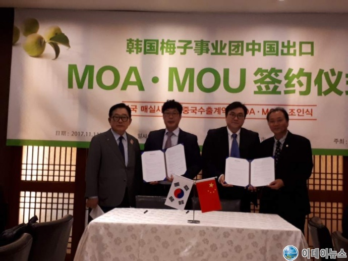 순천시는 11일 조충훈 시장, 임종기 시의회의장 등이 참석한 가운데 중국 상해 아우라기업관리공사와 미화 80만달러(한화 9억원) MOA를, 쑤닝(Suning)과 미화 100만달러(한화 11억원) MOU의 매실농축액 수출계약을 체결했다.
