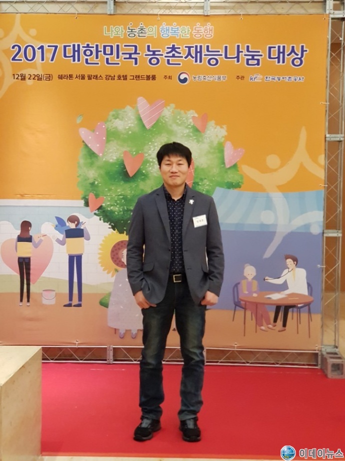 영광군은 지난 12월 22일 농림수산식품부가 주최하는 “2017 대한민국 농촌재능나눔 대상” 시상식에서 영광군 청년귀농인 임세훈씨(만39세)가 “개인공모 부문(훈격 한국농어촌공사장)”으로 수상했다.