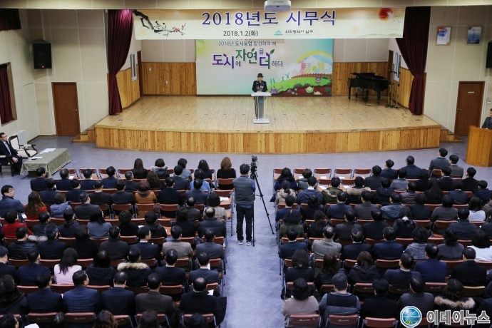 인천 남구는 2일 구청 대회의실에서 시무식을 갖고 2018년 무술년(戊戌年)의 힘찬 출발을 다짐하며 박우섭 남구청장을 비롯해 김순호 부구청장, 간부공무원 등 전 직원이 참석한 가운데 진행됐다.