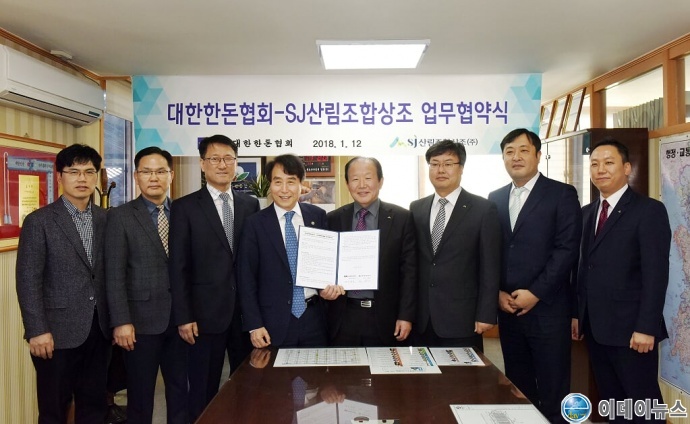 SJ산림조합상조(대표이사 이영배)와 대한한돈협회(회장 하태식)는 지난 주 12일(금) 대한한돈협회 본사에서 양사의 상호발전 및 영업활성화를 위한 MOU를 체결하였다.