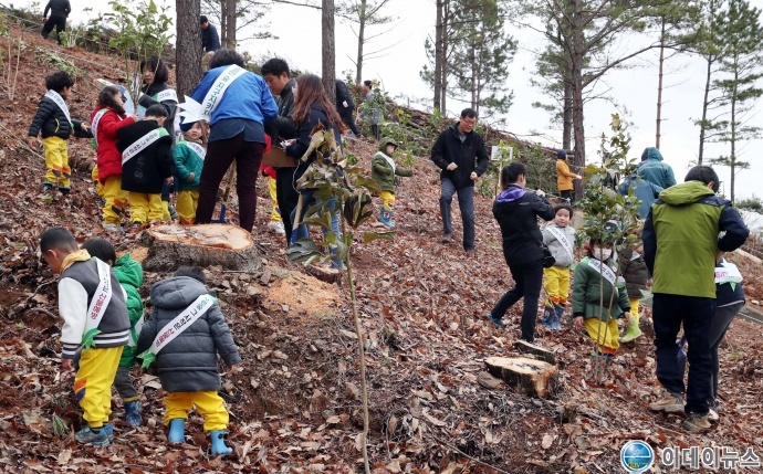 이 날 행사에 강진원 강진군수, 김상윤 의장을 비롯한 군의원, 공무원, 유관기관단체, 산림조합임직원, 어린이집 유아 등 230여명이 참여해 미래 소득숲 조성을 위해 힘을 모았다.