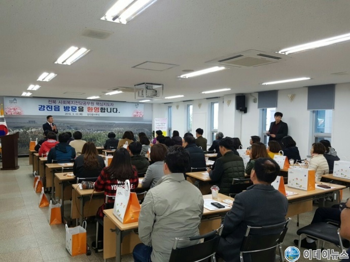 지난 22일 전라북도 사회복지전담 공무원 핵심지도자 40명의 방문단이‘찾아가는 복지서비스 우수지역 견학’을 위해 강진군 강진읍사무소를 방문했다.