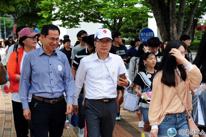 정종제 광주광역시 행정부시장이 19일 오후 오월길 걷기를 통해 5·18사적지를 재인식하고, 5·18민주화운동의 의미를 되새기는 ‘제4회 5·18스마트엔터어링’에 참석해 조선대정문에서 출발해서 5·18민주광장까지 걷는 오월길 자주코스를 시민들과 함께 걷고 있다.