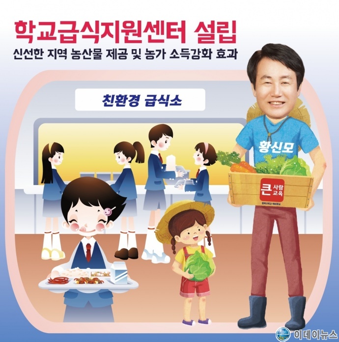 황 후보는 “우리 아이들에게 신선한 지역농산물을 우선 공급하는 한편, 확대 추진에 따른 지역농업 연계를 강화하고 공공급식 등 새로운 수요기반 창출로 지역생산과 유통, 소비가 선순환구조로 정착될 수 있도록 기여하는 학교급식지원센터를 설립해야 한다.”고 공약을 발표했다.