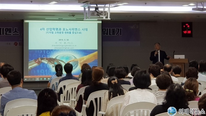 이날 실시된 부모교육 대강연회는‘포노사피엔스 세대 (Phono Sapiens) 창의적 인재로 키워내기’라는 주제로 전) EBS사장을 역임한 곽덕훈 부회장(주식회사 시공미디어)을 초청하여 진행되었다.