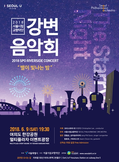 1일 서울시는 2018 서울시립교향악단 강변음악회 `별이 빛나는 밤`이 서울특별시 주최, 서울시립교향악단 주관으로 오는 9일 오후 7시 30분 여의도 한강공원 멀티플라자 이벤트광장에서 개최된다고 밝혔다.