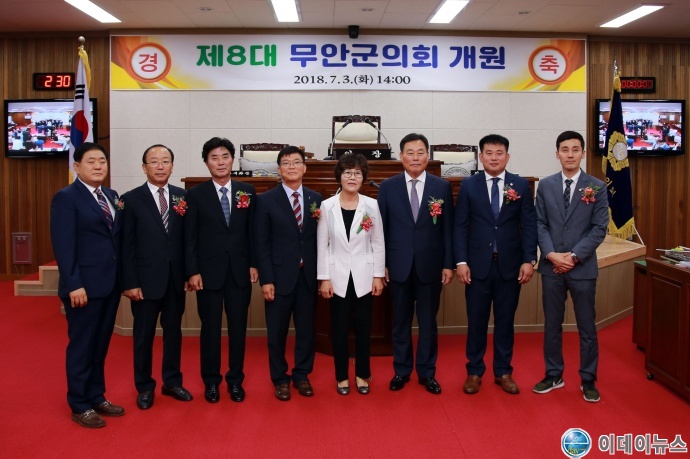 무안군의회(의장 이정운)는 3일 의회 본회의장에서 김산 무안군수와 각 기관사회단체장 그리고 제8대 의회의원 가족 등 약 100여 명이 참석한 가운데 제8대 무안군의회 개원식을 개최했다.