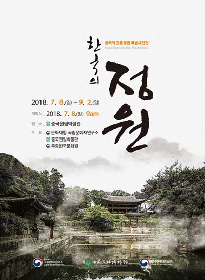 5일 문화재청 국립문화재연구소(소장 최종덕)는 중국원림박물관(관장 유요충)과 주중한국문화원(원장 한재혁) 공동으로 오는 8일부터 9월 2일까지 중국 베이징(北京) 원림박물관에서 `한국의 전통정원 특별 사진전(중국전시명: 한국풍경원림도편전 韩国风景园林图片展)`을 개최한다고 밝혔다.