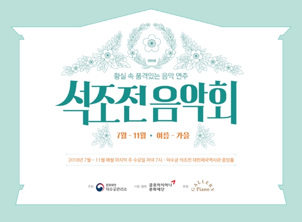 [아유경제=박무성 기자] 문화재청 덕수궁관리소(소장 오성환)는 금호아시아나문화재단과 함께 덕수궁 석조전에서 클래식 음악을 감상하는 `석조전 음악회`를 오는 25일부터 11월까지 매달 `문화가 있는 날(마지막 주 수요일)`에 개최한다. 단, 9월은 추석 연휴를 피해 19일 진행한다.