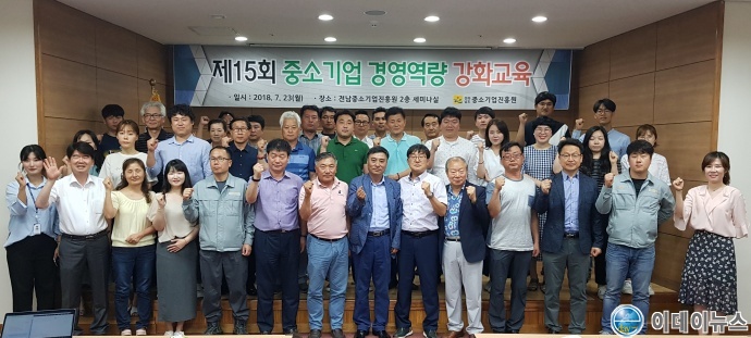 전라남도중소기업진흥원(원장 우천식)은 23일 진흥원 세미나실에서 전남지역 중소기업 임직원 50여 명을 대상으로 제15회 중소기업 경영역량강화교육을 했다.