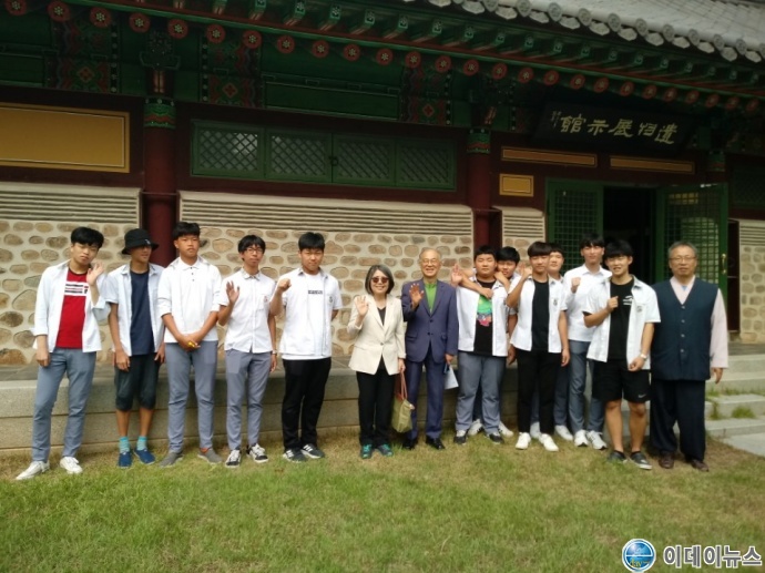 또, 영광공업고등학교 학생 30여명을 지킴이 교육에 인솔한 강대열부장선생은 즉석에서 학생들에게 강지원, 김영란부부와 단체촬영을 유도하기도 했다.