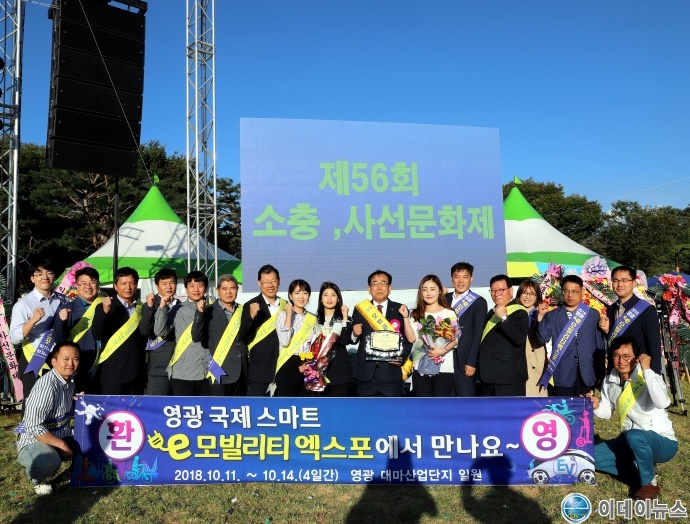 한편 소충·사선문화제 폐막식과 함께 진행된 시상식에는 영광군청 공직자 20여 명이 함께 하여 10월 11일부터 개최되는「영광 국제 스마트 이모빌리티 엑스포」의 성공 개최를 염원하는 홍보활동을 전개 하여 눈길을 끌었다.
