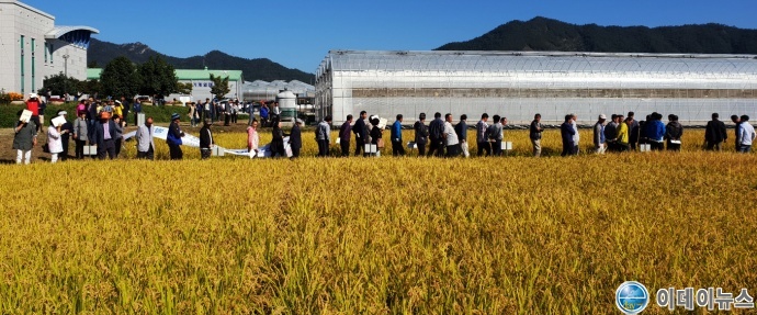 이 밖에도 농업기술센터 30 여 개 품종의 전시포장, 작천면 현산리 박산마을의 정부 보급종(해품벼) 증식포장, 전남농업기술원의 시험연구 포장을 현장 견학을 하며 포장관리 요령 및 신기술 도입에 대한 농가들의 불신과 우려를 해소하는 자리를 가졌다.
