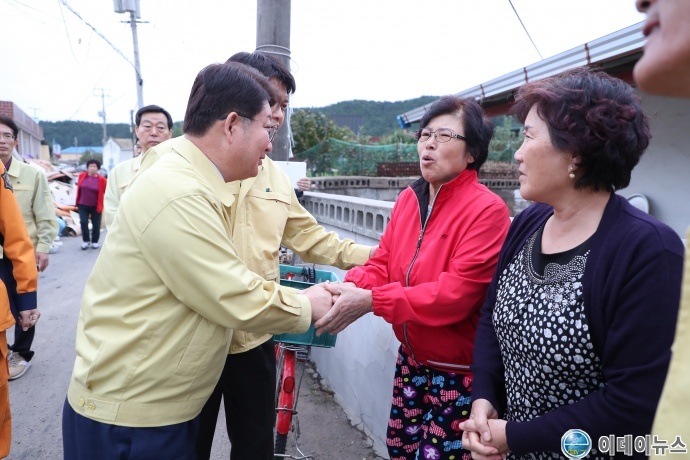 경북 영덕 지역의 피해복구 지원은 대구경북 한뿌리 상생협력의 일환으로 이루어지며, 지난 10. 2.(화)에는 권영진 대구시장과 이철우 경북도지사가 상호파견 협력근무 하였다.
