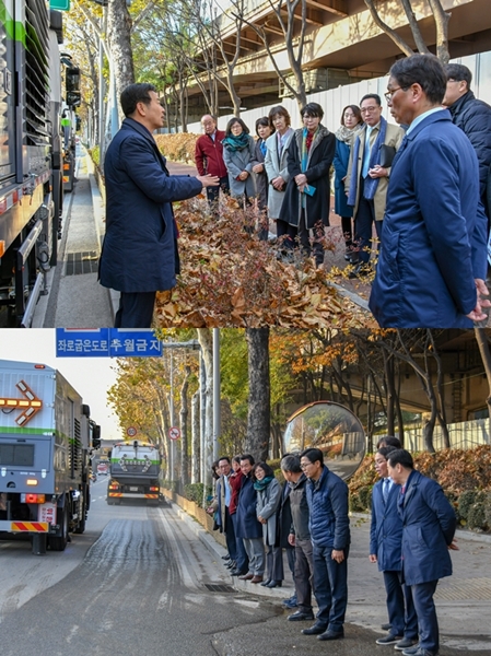[아유경제=조현우 기자] 강남구의회 복지도시위원회(위원장 최남일) 의원들은 지난 23일 오후 남부순환로에서 분진흡입차량 거리 청소 시연을 지켜보며 질의응답의 시간을 갖는 등 정책 제안을 위한 현장 중심의 의정활동을 펼쳤다.